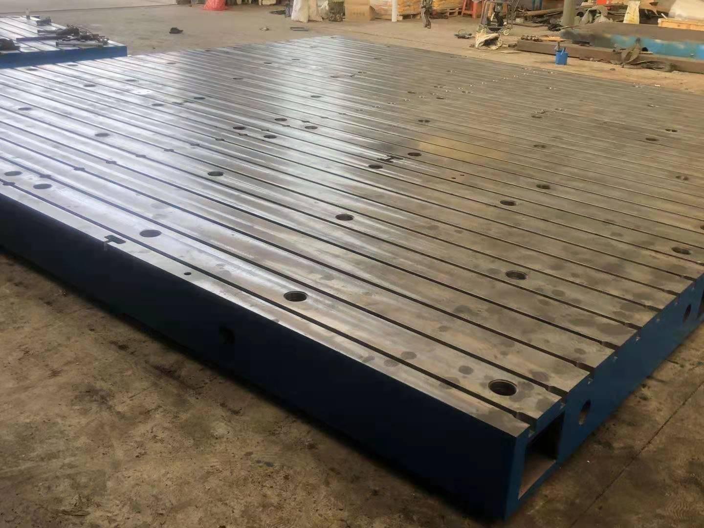 外观基本上是箱体式,工作面有长方形、正方形或圆形,材料为HT200-300,QT400-600,华威机械采用刮研工艺,工作面上可加工V形、T形、 U形槽、燕尾槽、圆孔、长孔等,是用于工件、设备检测、划线、装配、焊接、组装、铆焊的平面基准量具.